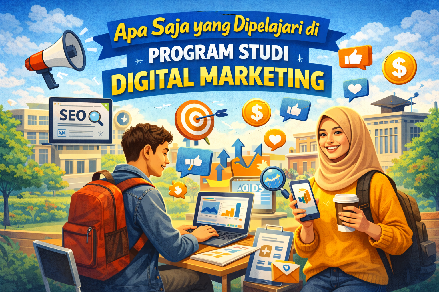 Program studi digital marketing menawarkan berbagai pembelajaran yang sangat relevan dengan kebutuhan dunia kerja modern. Mahasiswa akan mempelajari berbagai keterampilan penting seperti social media marketing, SEO, content marketing, digital advertising, hingga analisis data pemasaran.
